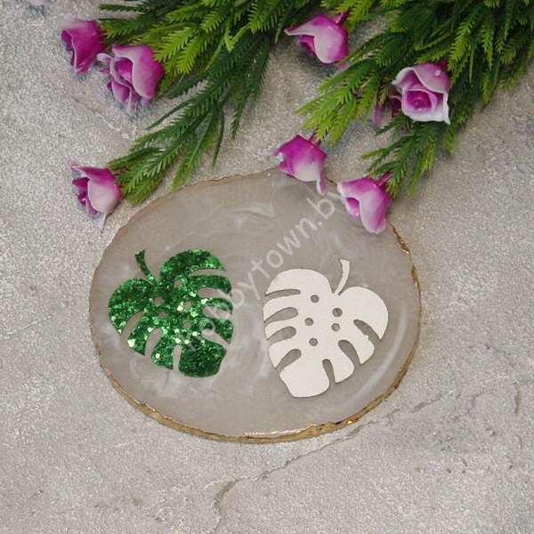 Патч-вырубка из кожзама «Лист монстеры» 40 мм (цв.зелёный) 1 шт.
