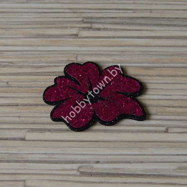 Патч-заготовка Цветок 35 мм (цв. чёрный/фуксия) 1шт.