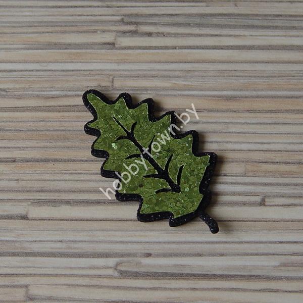 Патч-заготовка Листик 35 мм (цв. чёрный/зелёный) 1шт.