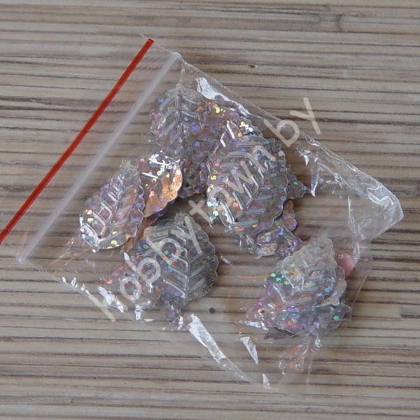 Пайетки фигурные Листик 13х24мм (цв. серебро голографик) 5гр.