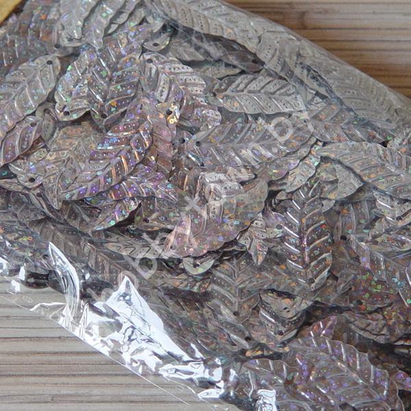 Пайетки фигурные Листик 12х32мм (цв. серебро голографик) 5гр.