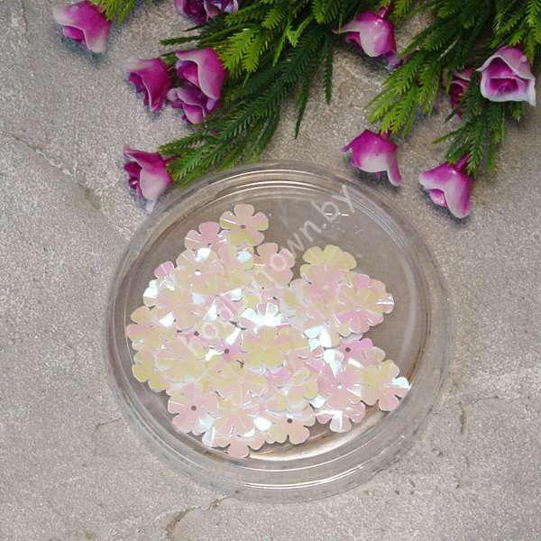 Пайетки фигурные Цветочки 14 мм (цв.белый перламутр) 5 гр.