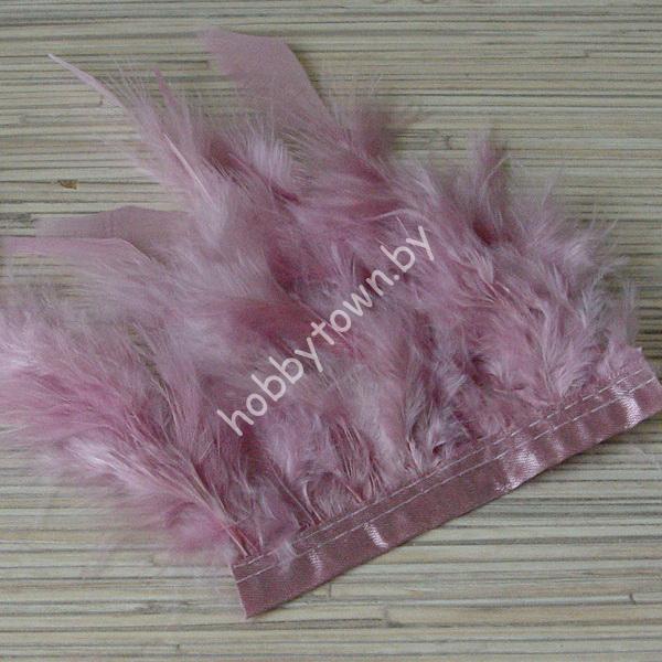 Перья декоративные на ленте (цв.пыльная роза) отрез 10 см