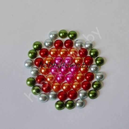 Полубусины-жемчуг 10мм (т.-зелёный, т.-малиновый, оранжевый, красный, серо-голубой) 10 шт.