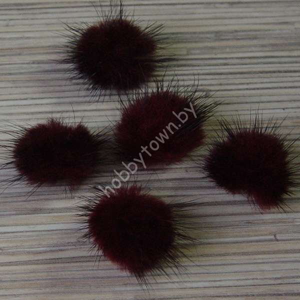 Помпон из натурального меха 3 см (цв. бордовый 4) 1 шт.