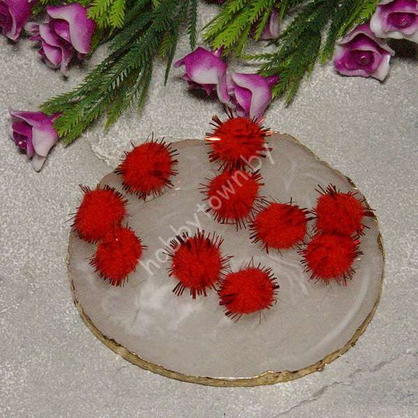 Помпоны с люрексом 1,5 см, (цв. красный) 10 шт.