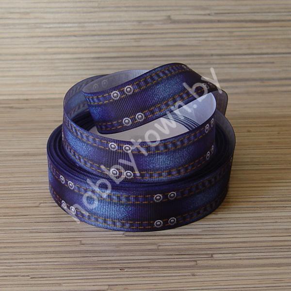 Репсовая лента с рисунком 25 мм “Джинс” (цв. синий) 1 метр