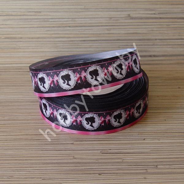Репсовая лента с рисунком 25 мм “Ученица” (цв. чёрный) 1 метр