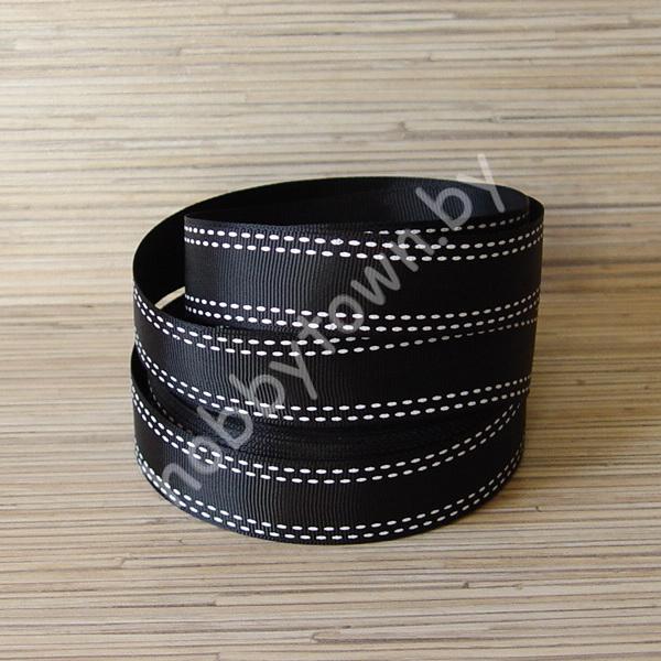 Репсовая лента с рисунком «Двойная строчка» 25 мм (цв.чёрный) 1 метр