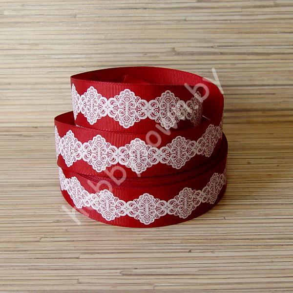 Репсовая лента с рисунком “Кружевной ромб” 25 мм (цв.бордовый/с белым) 1 метр