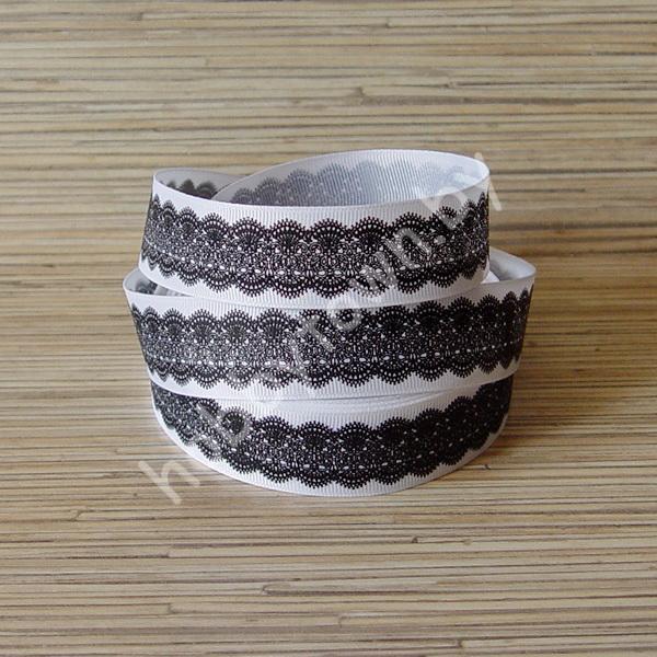 Репсовая лента с рисунком “Кружево” 25 мм (цв.белый/с чёрным) 1 метр