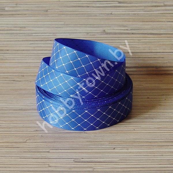 Репсовая лента с рисунком “Ромб” 25 мм (цв.синий) 1 метр