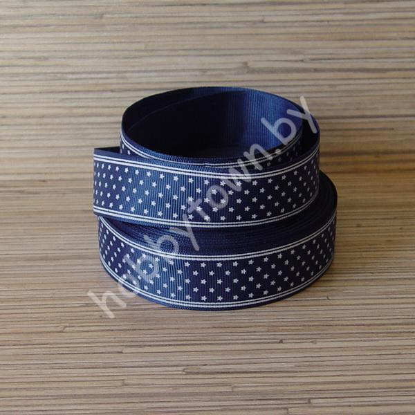 Репсовая лента с рисунком «Звёздочки» 25 мм (цв.синий ) 1 метр