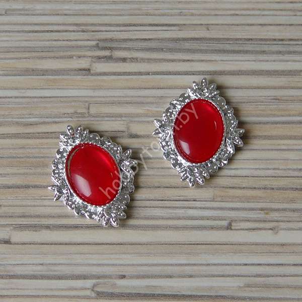 Серединка ювелирная 25×32 мм (цв.серебро/св-красный 3) 1 шт.