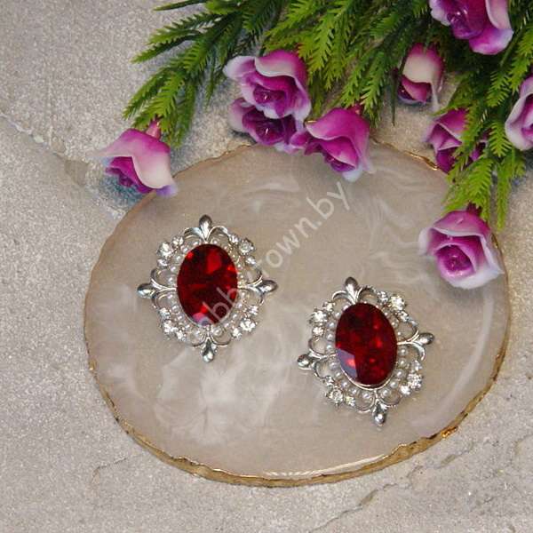 Серединка ювелирная 30×33 мм (цв.серебро/бордовый 01) 1 шт.