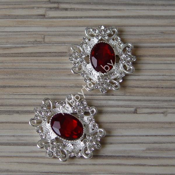 Серединка ювелирная 30×33 мм (цв.серебро/ бордовый 1) 1 шт.