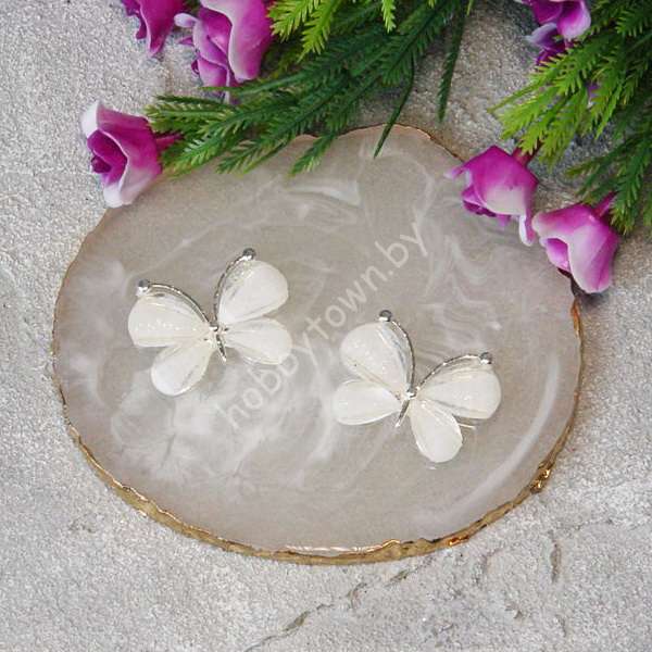 Серединка ювелирная Бабочка 28×22 мм (цв.белый 01) 1 шт.
