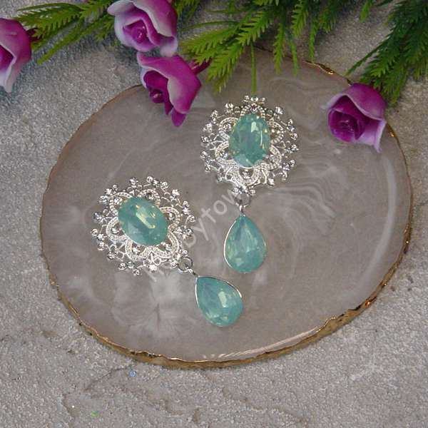 Серединка ювелирная с подвеской 25×45 мм (цв.серебро/аквамариновый А20) 1 шт.