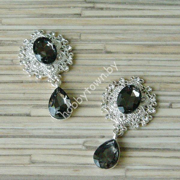 Серединка ювелирная с подвеской 25×45 мм (цв.серебро/графитовый 4) 1 шт.