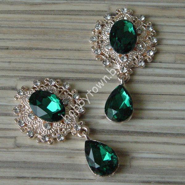 Серединка ювелирная с подвеской 25×45 мм (цв.золото/изумрудный 14) 1 шт.
