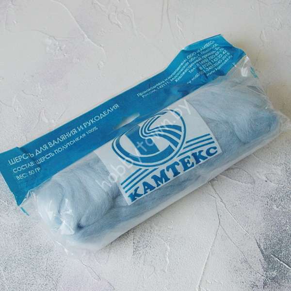 Шерсть для валяния полутонкая однотонная 50 гр. (цв. 014 светло-голубой)