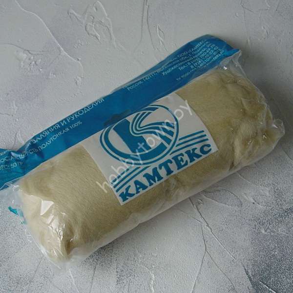 Шерсть для валяния полутонкая однотонная 50 гр. (цв. 001 суровый)