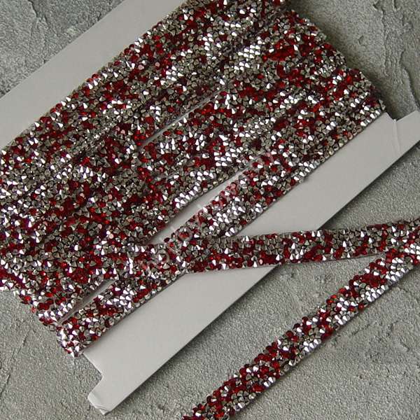 Стразовая лента на силиконовой основе, 1,2 см x 10 см (цв. красный/серебро 821)