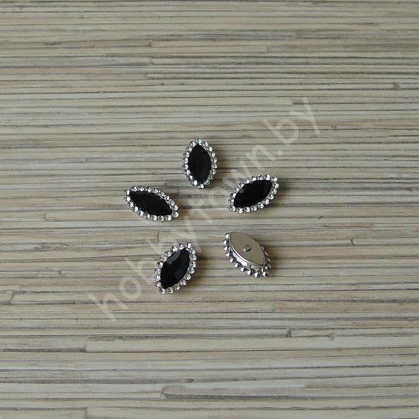Стразы пришивные в цапах Овал заостренный 11×20 мм (цв. чёрный) 1 шт.