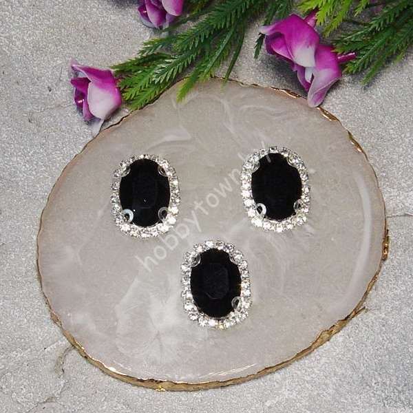Стразы пришивные в серебряной оправе 17×22 мм “Овал” (цв.чёрный 16) 1 шт.