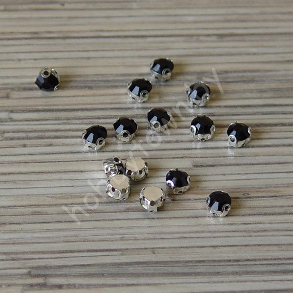 Стразы пришивные в серебряной оправе 7 мм (цв. чёрный) 10 шт.