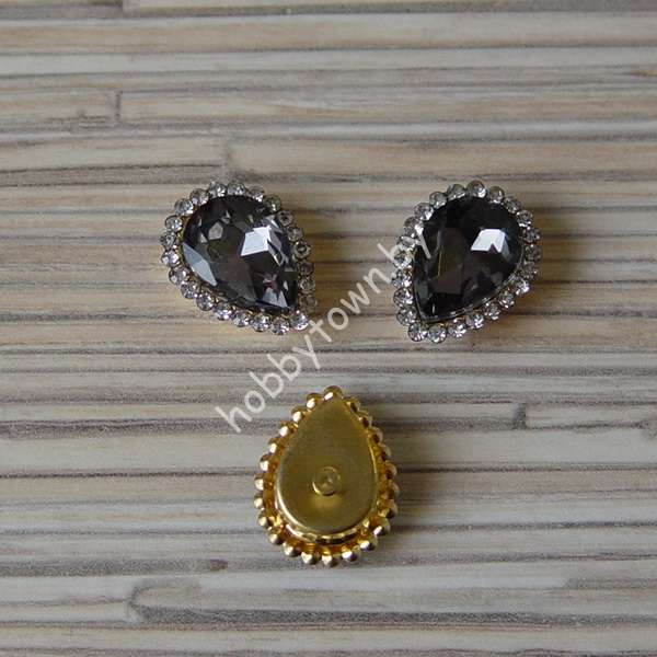 Стразы пришивные в золотой оправе Капля 14×18 мм (цв. графитовый 2) 1 шт.