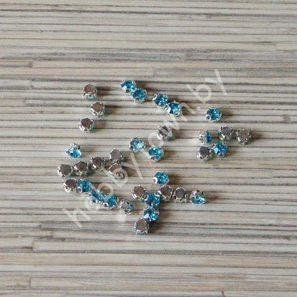 Стразы пришивные 5 мм (цв. серебро/голубой) 10 шт.