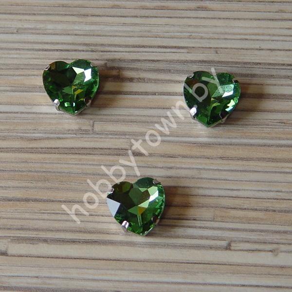 Стразы пришивные Сердечко 16 мм (цв. салатовый 7) 1 шт.