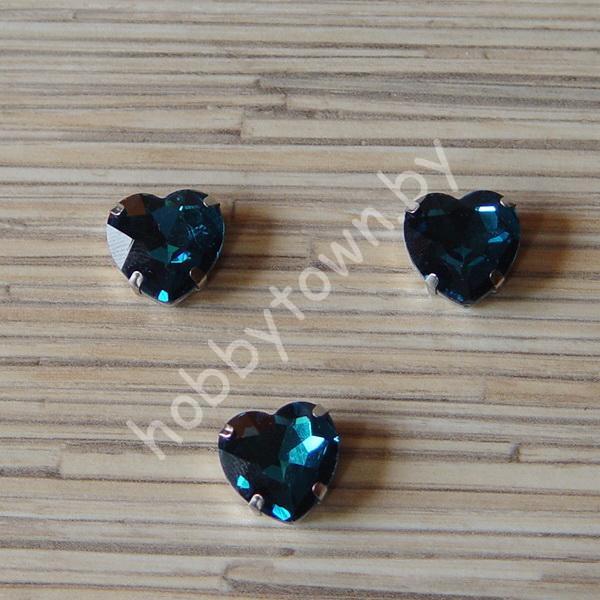 Стразы пришивные Сердечко 16 мм (цв. тёмно-бирюзовый 8) 1 шт.
