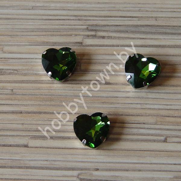 Стразы пришивные Сердечко 16 мм (цв. зелёный 6) 1 шт.