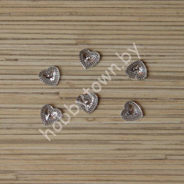 Стразы Сердечко 12 мм (цв. серебро) 1шт.