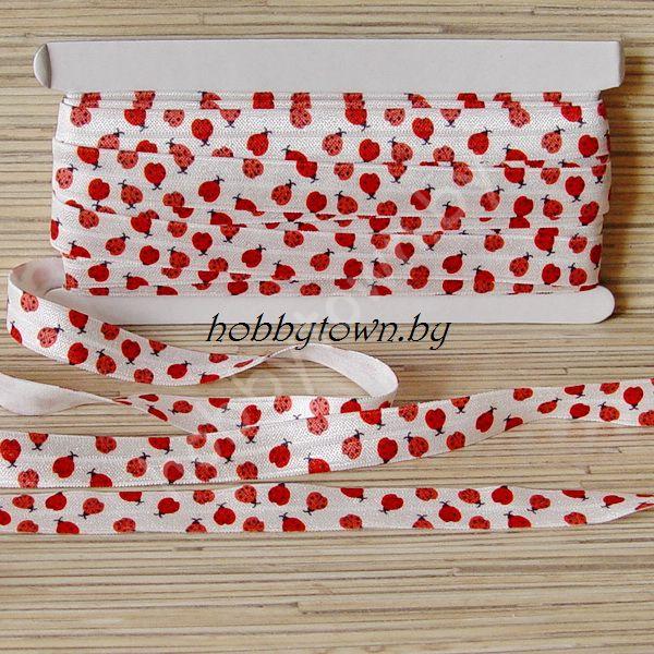 Тесьма эластичная 15мм “Божьи коровки” отрез 1 м