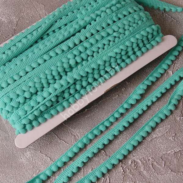 Тесьма с мини-помпонами, шир.10 мм помпон 5 мм (цв.тиффани) 1 м