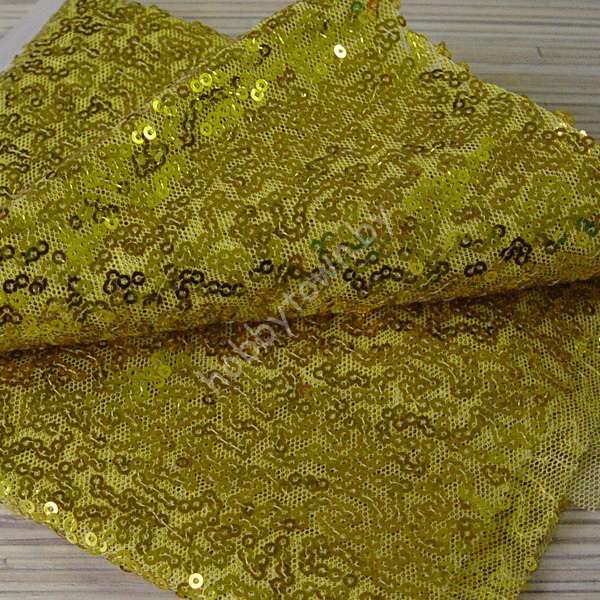 Ткань с пайетками на сетке 30×30 см (цв.яркое золото)