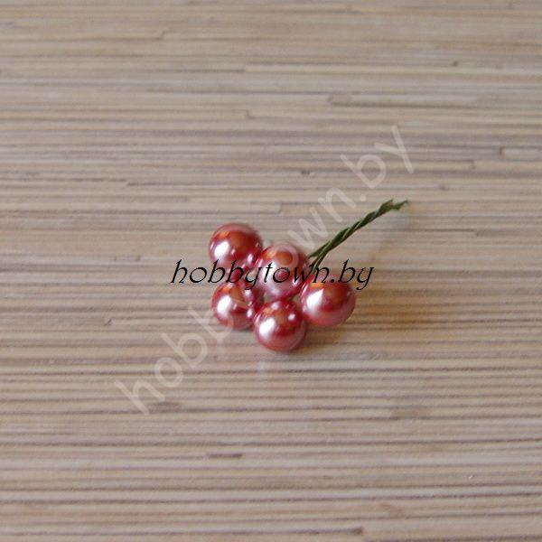 Ягодки на веточке 12 мм (цв.вишневый перламутр) 5 шт.