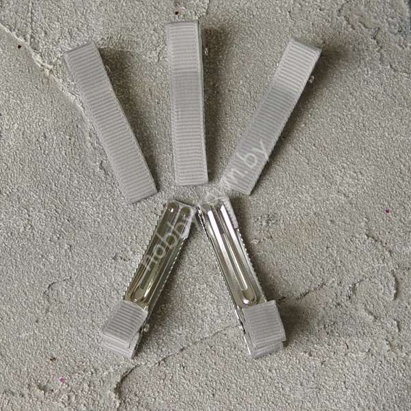 Зажим металлический с репсовой лентой 5 см (цв. серый 03) 1 шт.