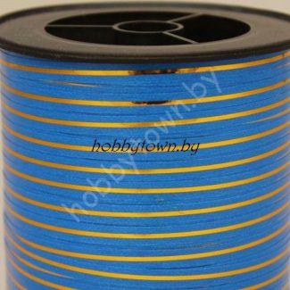 Лента декоративная 0,5см (синий, золотая полоска) 5 м