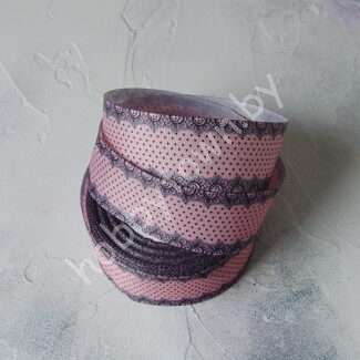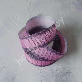 0,90 руб. ВЫБРАТЬ КОЛИЧЕСТВОЛента репсовая 40 мм с рисунком Кружево/мелкий горошек (цв. розовый) 1 м